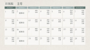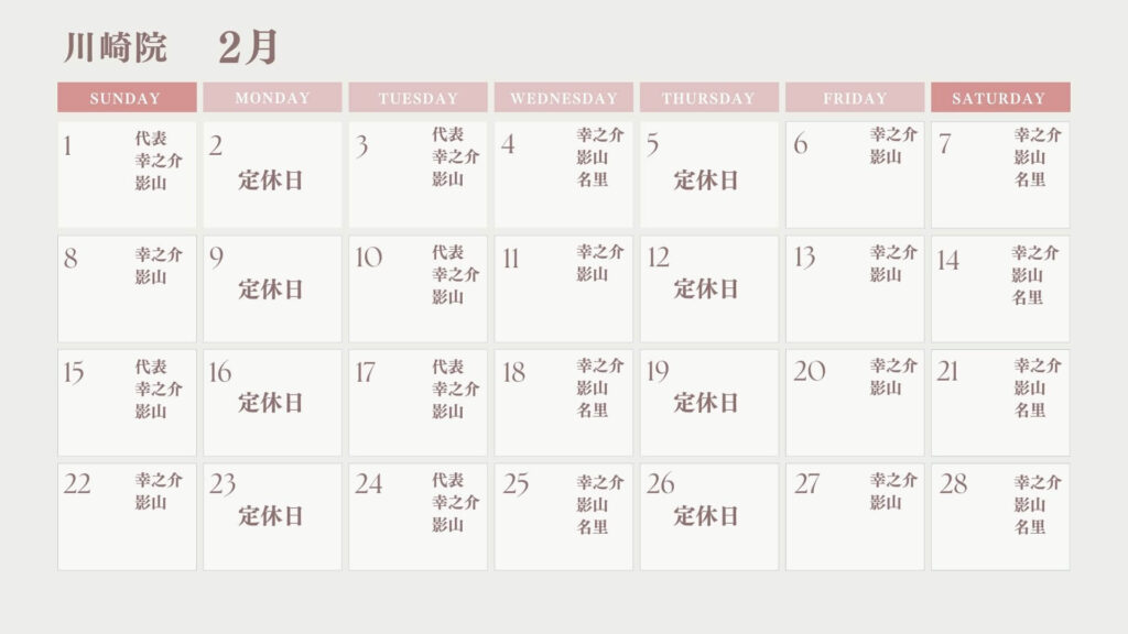 2月の営業日、出勤スタッフについてお知らせいたします。